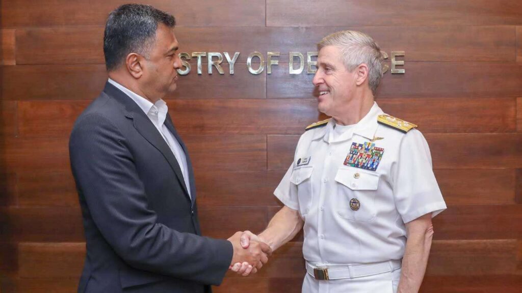இலங்கைக்கு விஜயம் மேற்கொண்டுள்ள அமெரிக்க பசுபிக் கப்பற்படையின் கட்டளைத்தளபதியான அட்மிரல் ஸ்டீவ் கேலர், இலங்கையின்பாதுகாப்புச் செயலாளரான (ஓய்வுபெற்ற) எயா வைஸ்மாஷல் சம்பத் துயகொன்தவை நேற்று (19) நேரில் சந்தித்து கலந்துரையாடியுள்ளார்.