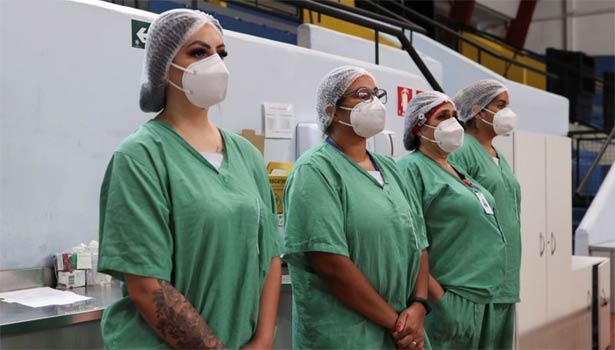 அந்நாட்டின் சண்டோ அண்ட்ரே நகரில் உள்ள மருத்துவமனையில் கொரோனா சிகிச்சை பிரிவில் பணியாற்றி வரும் ஊழியர்கள் புத்தாண்டு பிறந்த நேரத்தில் தங்கள் இருக்கையில் இருந்து எழுந்து நின்று சில நிமிடங்கள் அமைதியாக நின்றனர்.