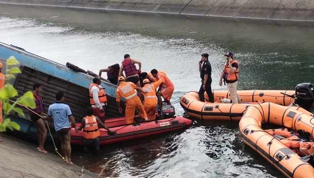 கால்வாயில் இருந்து 35 பயணிகளின் உடல்களை மீட்டு வெளியே கொண்டு வந்தனர். 12 பேரை காணவில்லை அவர்களை தேடும் பணி தீவிரமாக நடந்து வருகிறது.