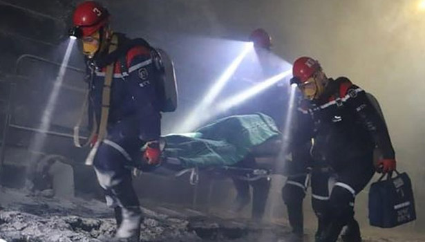 அப்போது சுரங்கத்தில் ஏற்பட்ட பயங்கர தீவிபத்தால் சுரங்க மேற்கூரை இடிந்து விழுந்ததில், அங்கு வேலை செய்துகொண்டிருந்த தொழிலாளர்கள் சிக்கினர்.