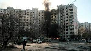 மரியுபோல் நகரம் மீது வெடிகுண்டு தாக்குதல் நடத்தும் ரஷிய போர் கப்பல்கள்
