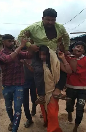 பின்னர், அந்த பெண்ணை அவரது கணவரான மங்கிலாலை தோளில் சுமக்க வைத்துள்ளனர். பாதிக்கப்பட்ட பெண் தனது கணவரை தோளில் சுமந்தபடி ஊர் முழுவதும் சுற்றவைத்துள்ளனர். இது தொடர்பான வீடியோ சமூகவலைதளத்தில் பரப்பப்பட்டது. இந்த வீடியோவின் அடிப்படையில் வழக்குப்பதிவு செய்த போலீசார் பெண்ணின் கணவன் மங்கிலால் உள்பட 11 பேரை கைது செய்துள்ளனர். மேலும், இந்த சம்பவம் தொடர்பாக தொடர்ந்து விசாரணை நடத்தி வருகின்றனர்.