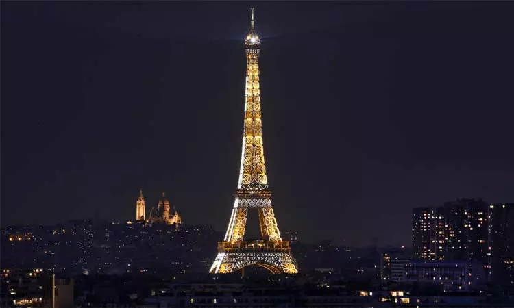 பிரான்ஸ் தலைநகர் பாரீசில் உள்ள உலக புகழ்பெற்ற ஈபிள் கோபுரம் ஒவ்வொரு நாளும் இரவில் மின்னொளியில் ஜொலிக்கிறது. 20 ஆயிரத்துக்கும் மேற்பட்ட ஒளிரும் மின் விளக்குகளால் கோபுரம் மின்னுகிறது. உள்ளூர் நேரப்படி நள்ளிரவு 1 மணி வரை ஈபிள் கோபுரத்தில் மின்விளக்குள் ஒளிரும். அதன்பிறகு மின் விளக்குகள் அணைக்கப்படும்.