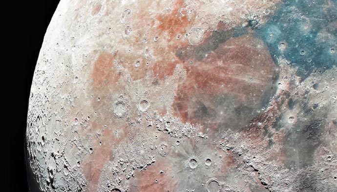 பூமியில் இருந்து வெறும் கண்ணால் பார்க்கும் போது நிலவு வெண்மையாகவும். சாம்பல் நிறமாகவும் காட்சி அளிப்பதுபோன்று தெரியும் ஆனால் இந்த படத்தின்படி அது அப்படி இல்லை என்பது தெரியவருகிறது. மேலும் சூரியனால் ஒளிரும் பகுதியை மிகவும் தெளிவாக காட்டுகிறது. அதில் எண்ணற்ற மாற்றங்கள் மற்றும், முகடுகள் இருப்பது தெரியவருகிறது.