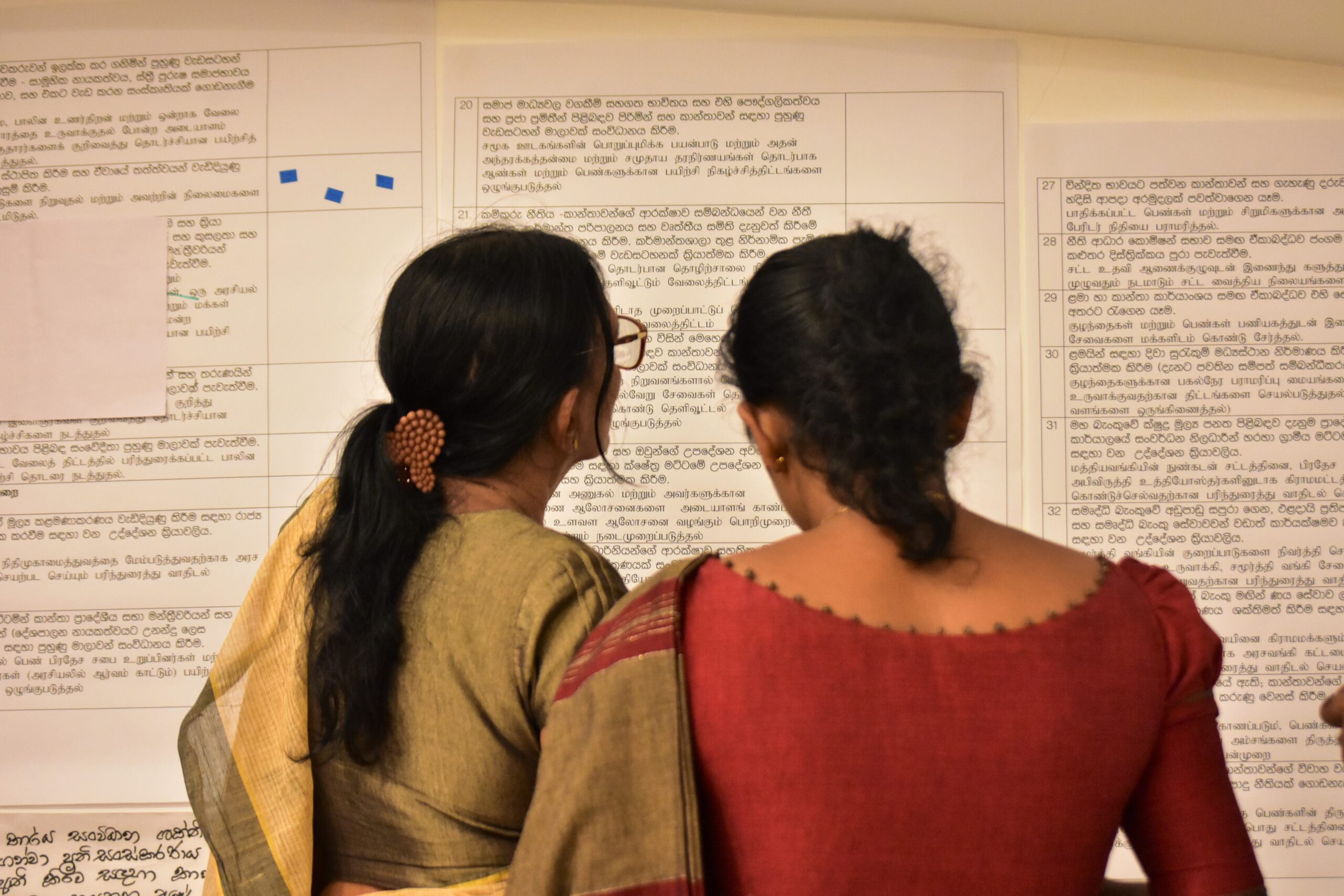 ஐ. நா பெண்கள் அமைப்பு 2018 மற்றும் 2022 க்கு இடையில் நாட்டின் ஐந்து மாகாணங்களின் 16 மாவட்டங்களில் பல்தரப்பு உரையாடல்களின் முதற் கட்டத்தை ஏற்பாடு செய்ததுடன், இது சமாதானம் மற்றும் பாதுகாப்பு விடயங்களில் பெண்களின் தலைமைத்துவம் மற்றும் தீர்மானமெடுக்கும் வகிபாகத்தை வலுப்படுத்துவதில் கவனம் செலுத்துகிறது. உரையாடலின் தற்போதைய கட்டம் நாட்டின் எஞ்சிய நான்கு மாகாணங்களை உள்ளடக்குவதுடன் அது அனுராதபுரம், பதுளை, கொழும்பு, கம்பஹா, களுத்துறை, கேகாலை, மொனராகலை, பொலன்னறுவை மற்றும் இரத்தினபுரி ஆகிய மாவட்டங்களில் நடைபெற்றன.