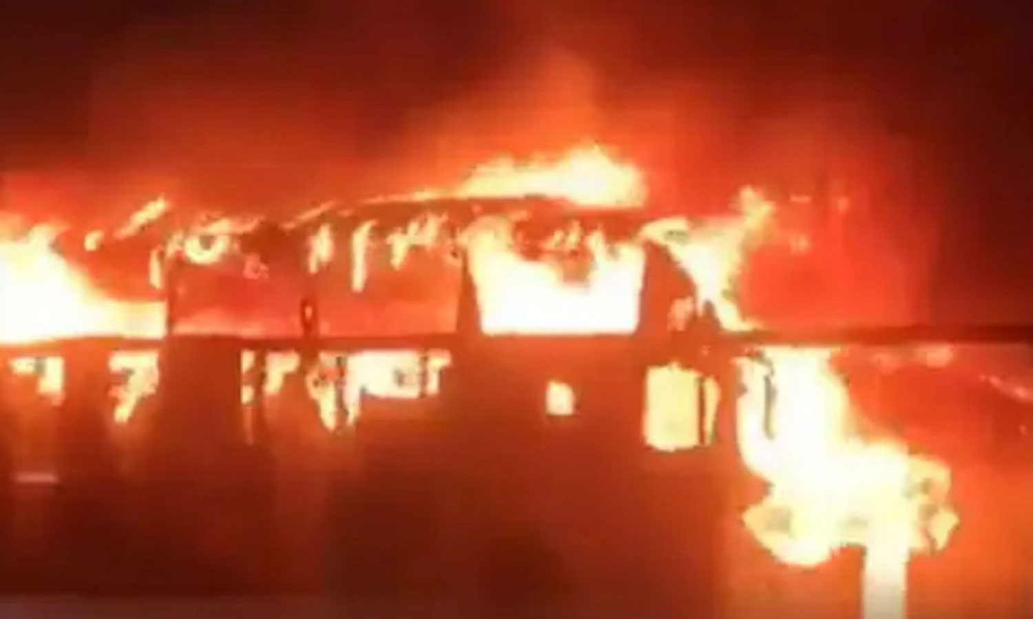 ஆனால் பஸ்சுக்குள் சிக்கி கொண்ட குழந்தைகள் உள்பட 21 பேர் தீயில் கருகி பலியானார்கள். 40-க்கும் மேற்பட்டோர் படுகாயம் அடைந்தனர்.