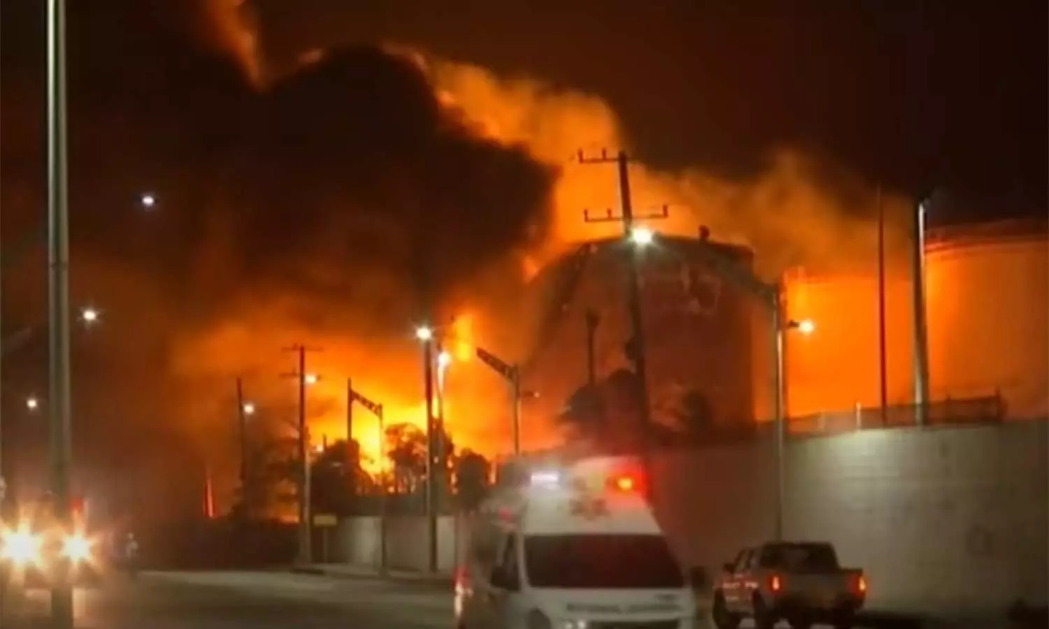 தீயணைப்பு படையினர் சம்பவ இடத்திற்கு வந்து தீயை அணைக்கும் பணியில் ஈடுபட்டுள்ளனர். அருகில் உள்ள எரிபொருள் டேங்குகளில் தீ பரவும் அபாயம் ஏற்பட்டுள்ளது. மூன்று நாட்களில் தீயை கட்டுக்குள் கொண்டு வர முடியும் என தீயணைப்பு துறை கூறி தெரிவித்துள்ளது.