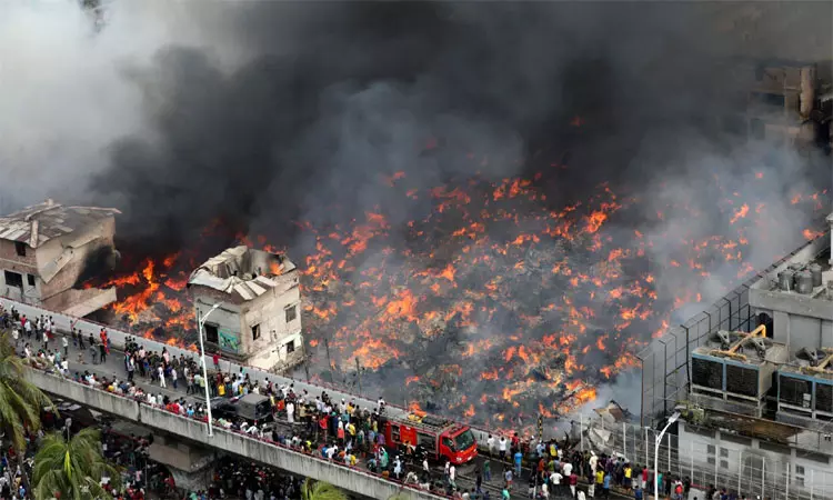 வங்காளதேசத்தில் பயங்கர தீ விபத்து: நூற்றுக்கணக்கான ஜவுளி கடைகள் எரிந்து நாசம்