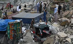 பாகிஸ்தானின் வடமேற்கு பகுதியில் உள்ள கைபர் பக்துங்வா மாகாணத்தில் நேற்று அதிகாலை கனமழை பெய்தது. அந்த நேரத்தில் ஆப்கானிஸ்தானின் எல்லையில் அமைந்துள்ள கைபர் கணவாய் அருகே டோர்காம் நெடுஞ்சாலையில் லாரிகள் உள்ளிட்ட பல வாகனங்கள் சென்று கொண்டிருந்தன. அப்போது அங்கு திடீரென நிலச்சரிவு ஏற்பட்டது.