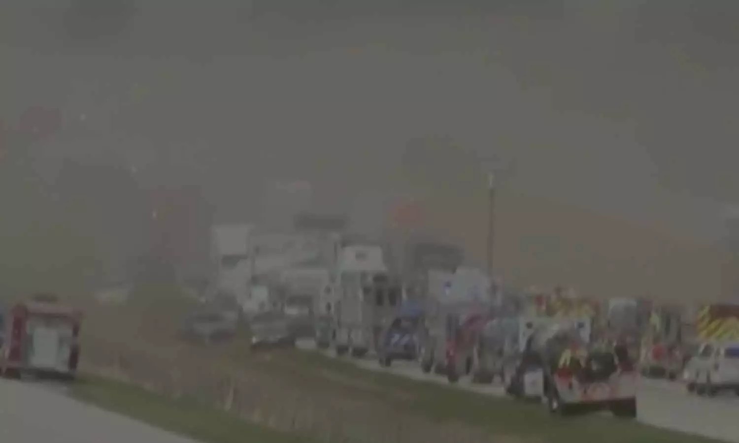 படுகாயம் அடைந்தவர்களை மீட்டு ஆஸ்பத்திரிக்கு அனுப்பி வைத்தனர். இது தொடர்பாக இல்லினாய்ஸ் போலீசார் கூறும் போது, ’60 பயணிகள் மற்றும் 30 வணிக வாகனங்கள் விபத்துக்குள்ளாகியது’ என்றனர்.