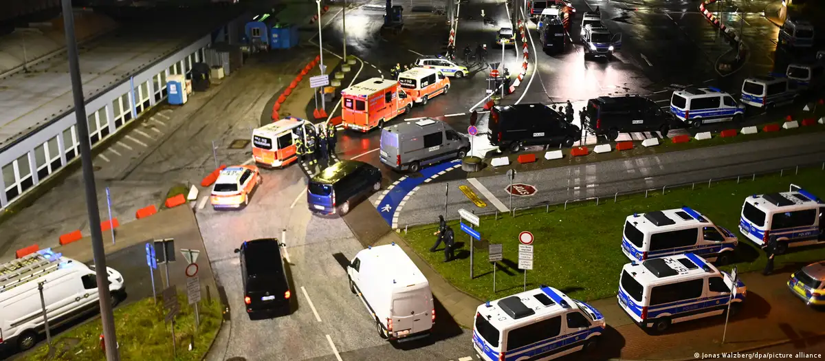 ஜெர்மனியின் ஹாம்பர்க் நகரில் உள்ள விமான நிலையத்தில் மர்ம நபர் ஒருவர் திடீரென காரில் வந்துள்ளார். கையில் துப்பாக்கியுடன் காணப்பட்ட அவர், வானை நோக்கி 2 முறை சுட்டார். பயணிகள் அவர்களின் உறவினர்கள் என அந்தப் பகுதியில் இருந்தவர்கள் அலறியடித்து ஓடினர்.