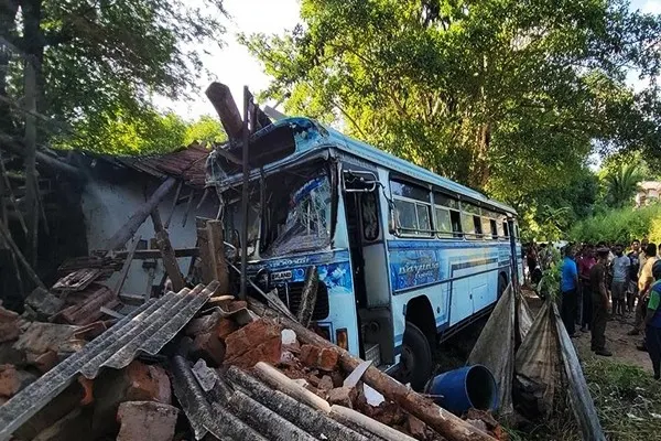 30 பேருடன் பயணித்த பேருந்து வேக கட்டுப்பாட்டை இழந்து வீட்டின் மதிலுக்குள் புகுந்து விபத்து