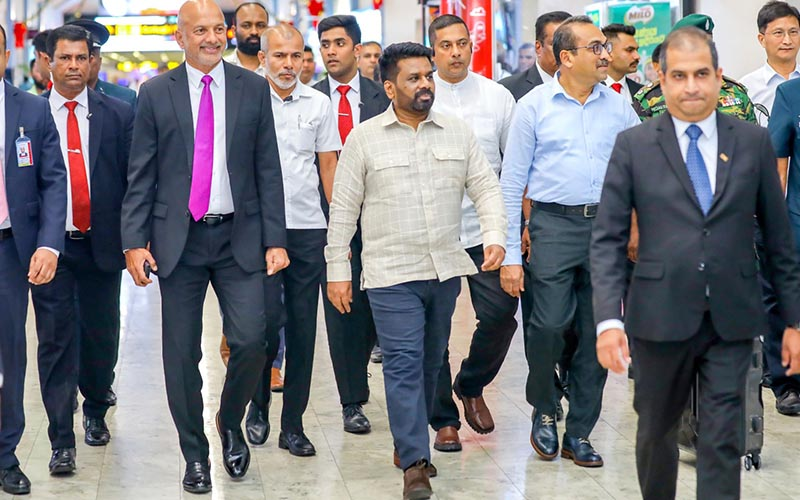 ஜனாதிபதி அநுர குமார திசாநாயக்க பயணித்த பாதையின் இருமருங்கும் இரு நாடுகளின் தேசியக் கொடிகளால் அலங்கரிக்கப்பட்டிருந்தன.