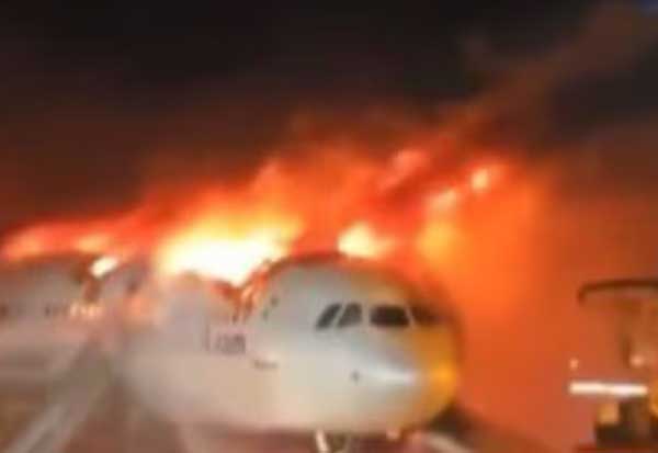 விமானத்தின் பல பகுதிகள் தீப்பிடித்து எரிந்துள்ளதை காண்பிக்கும் படங்கள் வெளியாகியுள்ளன.