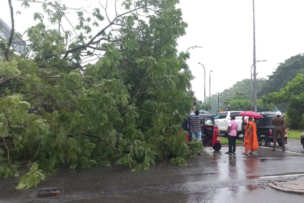 பாரிய மரம் வேரோடு சரிந்து வீழ்ந்தில் அவ்வழியாக சென்ற 7 வாகனங்களுக்கு சேதம் ஏற்பட்டுள்ளது. அத்தோடு, கொழும்பு வீதிகளில் பாரிய போக்குவரத்து நெரிசல் ஏற்பட்டுள்ளது.