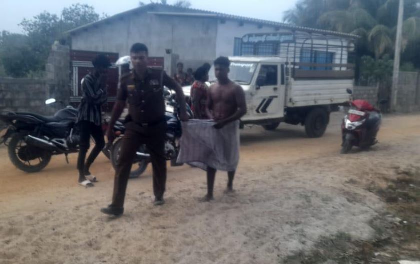 பின்னர் மேலங்கி இல்லாது சாரத்துடன் குறித்த இளைஞனை கைது செய்து , சாரத்தில் பிடித்து இழுத்து சென்ற போது சாரம் அவிழந்தையும் கருத்தில் எடுக்காது, கையில் துப்பாக்கியுடன் மனிதாபிமானமின்றி இளைஞனை பொலிஸ் நிலையம் இழுத்து சென்றுள்ளனர்.