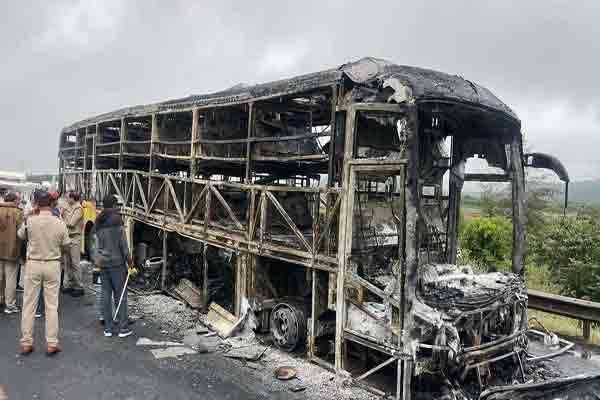 அதிகாலையில் தீப்பிடித்து எரிந்த பேருந்து 25 பேர் உடல் கருகி பலி