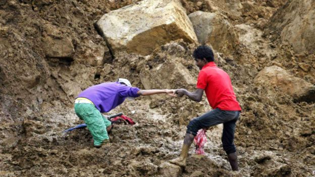 இலங்கையில் கேகாலை மாவட்டத்திலுள்ள அரநாயக்க பிரதேசத்தில் செவ்வாய்க்கிழமை மாலை இடம் பெற்ற நிலச்சரிவில் சிக்கியவர்களை மீட்கும் பணிகள் தொடர்ந்தும் நடைபெறுகின்றது.பொலிஸ் மற்றும் இராணுவம் உட்பட ஏராளமானோர் மீட்பு நடவடிக்கையில் தீவிரமாக ஈடுபட்டுள்ளனர். மீட்பு பணியாளர்களினால் இன்று இரவு வரை 400 பேர் மீட்கப்பட்டுள்ளதாக அதிகாரிகள் தெரிவிக்கின்றனர்.ஏற்கனவே இந்த பிரதேசத்திலுள்ள குடியிருப்பாளர்களுக்கு நிலச்சரிவு அபாய எச்சரிக்கை விடுக்கப்பட்டிருந்ததாக கூறப்படுகின்றது.