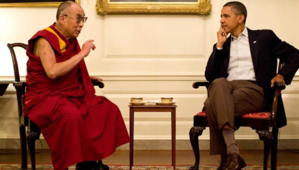 சீனாவின் ஆதிக்கத்தில் இருக்கும் திபெத் நாட்டை தனிநாடாக அறிவிக்கக்கோரும் விடுதலை போராட்டத்தில் ஈடுபட்டுவரும் புத்தமத துறவியான தலாய் லாமா அமெரிக்காவில் சுற்றுப்பயணம் செய்து வருகிறார். அவர் அமெரிக்காவில் சுற்றுப்பயணம் செய்யும் வேளைகளில் அமெரிக்க அதிபர் பராக் ஒபாமா வாஷிங்டன் நகரில் இருந்தால் அதிபரின் வெள்ளை மாளிகையில் தலாய் லாமாவை மரியாதை நிமித்தமாக சந்தித்துப் பேசுவது வழக்கம்.