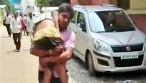 குழந்தைகள் ஆஸ்பத்திரிக்கு கொண்டு சென்றபோது அவனை பரிசோதித்துவிட்டு அவன் உயிரிழந்து விட்டதாக டாக்டர்கள் தெரிவித்தனர். இதைத்தொடர்ந்து மகன் பிணத்தை தோளில் சுமந்தபடியே சுனில்குமார் வீட்டுக்கு கொண்டு சென்றார்.