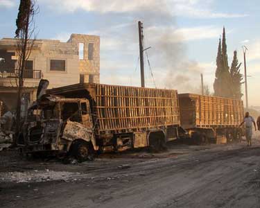 சிரியாவில் உதவிப்பொருட்களுடன் சென்ற வாகனங்கள் மீது தாக்குதல்: ரஷியாவை குற்றம் சாட்டுகிறது, அமெரிக்கா
