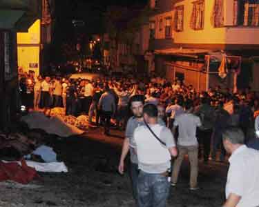 திருமண விழாவுக்கு வந்திருந்தவர்கள் எல்லாம் மகிழ்ச்சி கொண்டாட்டத்தில் இருந்தபோது கூட்டத்தில் இருந்த ஒரு தீவிரவாதி தனது உடலில் கட்டியிருந்த குண்டுகளை வெடிக்க வைத்தான். இதில் அந்த தீவிரவாதியின் உடல் சின்னாபின்னமாக கிழிந்து சிதறியது.
