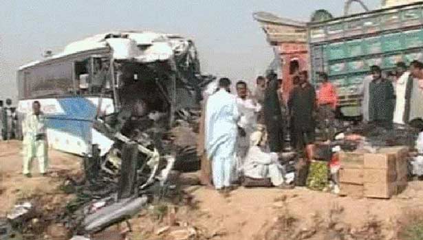 பாகிஸ்தானின் பஞ்சாப் மாகாண தலைநகரான லாகூரில் இருந்து சுமார் 600 கிலோமீட்டர் தூரத்தில் உள்ள ரஹிம் யார் கான் நகரில் உள்ள நெடுஞ்சாலையில் இன்று இரு பஸ்கள் நேருக்குநேர் மோதிக் கொண்ட விபத்தில் 30 பேர் பலியாகினர். பலர் காயமடைந்தனர்.காயமடைந்தவர்கள் அனைவரும் அருகாமையில் உள்ள மருத்துவமனையில் சிகிச்சைக்காக அனுமதிக்கப்பட்டுள்ளனர். அவர்களில் சிலரது நிலைமை கவலைக்கிடமாக உள்ளதால் பலி எண்ணிக்கை மேலும் அதிகரிக்கக்கூடும் என அஞ்சப்படுகிறது.