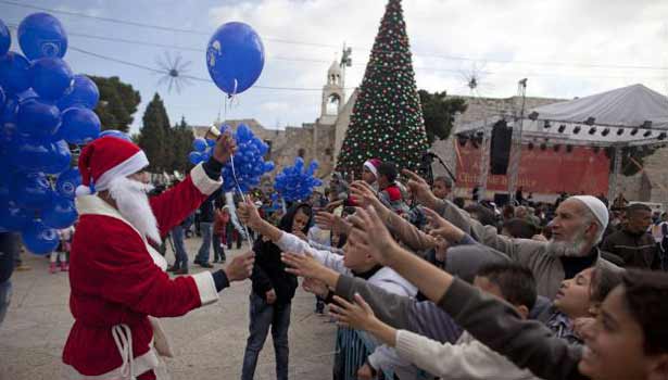 முன்னதாக நேற்று, கிறிஸ்துமஸ் பண்டிகையை முன்னிட்டு பெத்லகேம் நகரம் முழுவதும் வண்ணவண்ண மின்விளக்குகளால் அலங்கரிக்கப்பட்டிருந்தது. குடியிருப்பு பகுதிகளில் உள்ள தெருக்களில் புத்தாடை உடுத்திய சிறுவர்-சிறுமியர் வானவேடிக்கைகளை கண்டு களித்தனர். உறவினர்கள் ஒருவருக்கொருவர் கிறிஸ்துமஸ் வாழ்த்து கூறி, கேக்களை பரிமாறி உற்சாகமாக காணப்பட்டனர்.