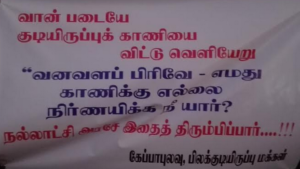 விமானப் படையினரால் விடுவிக்கப்பட்டதாக தெரிவிக்கப்பட்ட தமது காணிகளை மீள வழங்க வேண்டும் என வலியுறுத்தி கடந்த திங்கட்கிழமையிலிருந்து போராட்டத்தை பிலவுக்குடியிருப்பு மக்கள் முன்னெடுத்து வருகின்றனர்.