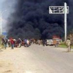 இந்நிலையில், பொதுமக்களை பாதுகாப்பாக அழைத்துச் செல்லும் பஸ்களைக் குறிவைத்து கிளர்ச்சியாளர்கள் தற்கொலைப்படை தாக்குதல் நடத்தினர். வெடிகுண்டுகள் நிரப்பப்பட்ட வேனை ஓட்டி வந்த தீவிரவாதி, பஸ்களின் அருகே வந்ததும் வெடிக்கச்செய்துள்ளான்.