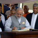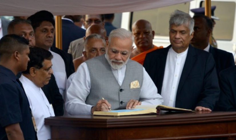 அதனைத் தொடர்ந்து விமான நிலையத்தில் வைக்கப்பட்டிருந்த விசேட அதிதிகளுக்கான நினைவு ஏட்டில் கைச்சாத்திட்ட மோடி, பிரதமர் ரணில் விக்ரமசிங்கவுடன் விமான நிலையத்திலிருந்து வெளியேறினார்.
