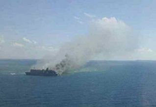 இந்தோனேஷியாவில் 192 பேருடன் சென்ற கப்பல் நடுக்கடலில் தீப்பிடித்ததில் 5 பேர் பலியாயினர். மீட்புபணிகள் நடக்கின்றன.இந்தோனேஷியாவின் மாஸாலம்போ தீவில் இருந்து 192 பேருடன் கப்பல் கடந்த வெள்ளியன்று புறப்பட்டுச் சென்றது. ஜாவா தீவு நோக்கி சென்ற போது நேற்று (சனிக்கிழமை) நடுக்கடலில் திடீரென தீப்பிடித்தது. இதில் 5 பேர் பலியாயினர். கப்பல் தீப்பிடிப்பதையறிந்த பயணிகள் அலறியடித்து உயிரை காப்பாற்ற கடலில் குதித்ததாக கூறப்படுகிறது. தகவலறிந்த தேசிய மீட்புபடையினர் கப்பலில் சிக்கியவர்களை மீட்டனர். எனினும் எத்தனை பேர் கடலில் குதித்தனர் என்பது தெரியவில்லை. தேடும் பணி நடக்கிறது.