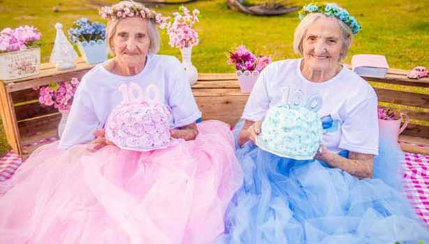 பிரேசில் நாட்டில் கரியா சியா பகுதியை சேர்ந்த இரட்டை சகோதரிகள் மரியா பிக்னேடன் பான்டின், பவுலினா பிக்னேடன் பான்டின். இவர்களுக்கு 100 வயது ஆகிறது. அதையொட்டி வருகிற 24-ந்தேதி (நாளை மறுதினம்) விழாவை மிக சிறப்பாக கொண்டாட திட்டமிட்டுள்ளனர். அதற்கு முன்பு இருவரும் ஒன்றாக இருப்பது போன்று போட்டோக்கள் எடுத்துக் கொண்டனர். கமீலா லீமா என்ற போட்டோ கிராபர் இருவரையும் பலவித கோணங்களில் படம் எடுத்தார்.