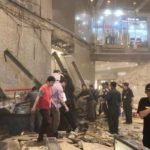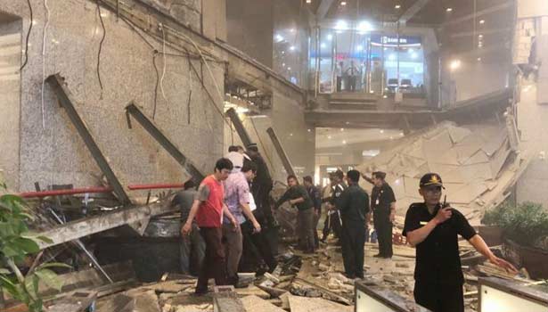 கண்ணாடி துண்டுகள் மற்றும் இரும்பு கம்பிகள் சிமெண்ட் கான்கிரீட்டுடன் பெயர்ந்து கீழே விழுந்த இடிபாடுகளுக்குள் பலர் சிக்கி கொண்டனர். தகவல் அறிந்து விரைந்துவந்த மீட்புப்படையினர் இடிபாடுகளில் இருந்து பலரை மீட்டு அருகாமையில் புல்தரை பகுதிக்கு கொண்டுவந்து சேர்த்தனர். இந்த விபத்தில் 75 பேர் காயமடைந்ததாக உள்நாட்டு ஊடகங்கள் செய்தி வெளியிட்டுள்ளன.