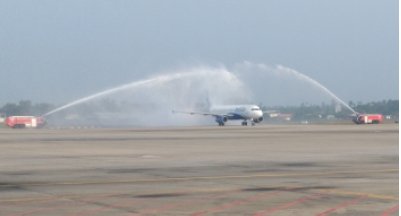இலங்கை – இந்திய நாடுகளுக்கிடையிலான விசேட விமான சேவையொன்று இன்று (20) ஆரம்பிக்கப்பட்டுள்ளது.இதன் முதலாவது விமானம் சென்னை விமான நிலையத்திலிருந்து கட்டுநாயக்க நோக்கி இன்று காலை 8.00 மணிக்கு வந்தடைந்துள்ளது. இந்த விமானம் கட்டுநாயக்கவில் வரவேற்கப்படும் காட்சியையே இப்படத்தில் காண்கின்றோம்.