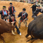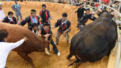 ஜப்பானில் காளைகள் மோதும் வீர விளையாட்டு: முதன் முறையாக பெண்களுக்கு அனுமதி