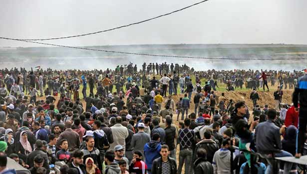 போராட்டக்காரர்களை ஒடுக்கும் விதத்தில் இஸ்ரேல் படையினர் சரமாரியாக துப்பாக்கிச்சூடு நடத்தினர். இந்த துப்பாக்கிச்சூட்டில் 59 பாலஸ்தீனர்கள் கொன்று குவிக்கப்பட்டனர். மேலும் ஆளில்லா விமானங்கள் மூலம் இஸ்ரேல் கண்ணீர்ப்புகை குண்டுகளையும் வீசியது.