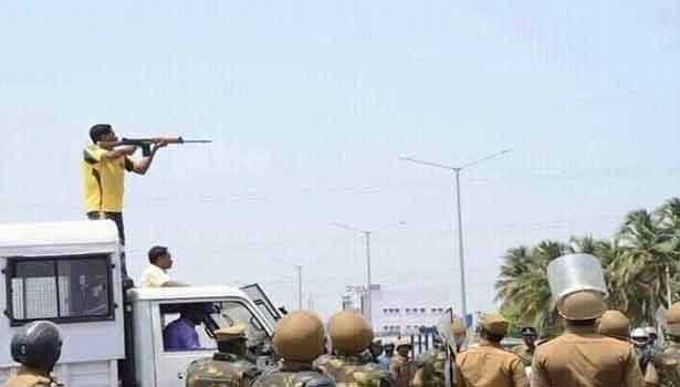 ஒரு கட்டத்தில் போலீசார் துப்பாக்கி சூடு நடத்தினர். இதனால் போராட்டக்காரர்கள் சிதறி ஓடினர். இதில் காளியப்பன் (வயது 22) என்ற இளைஞர் உயிரிழந்தார். மேலும் 4 பேர் பலத்த காயமடைந்தனர். அவர்கள் உடனடியாக மருத்துவமனைக்கு அழைத்துச் செல்லப்பட்டனர்.