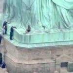 அமெரிக்காவில் பிரசித்தி பெற்ற சுதந்திரதேவி சிலை மேல் ஏறிய பெண் மீது வழக்கு