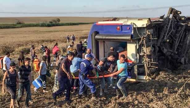 _பல்கேரியா நாட்டின் கபிகுல் பகுதியில் இருந்து துருக்கி தலைநகர் இஸ்தான்புல்லுக்கு பயணிகள் ரெயில் ஒன்று புறப்பட்டது அதில் 360-க்கு மேற்பட்டோர் பயணம் செய்தனர். தெகிர்டாக் பகுதியில் வரும் போது பயணிகள் ரெயிலின் ஆறு பெட்டிகள் திடீரென தடம் புரண்டன. இந்த விபத்தில் அதில் பயணம் செய்த 10 பயணிகள் பரிதாபமாக சம்பவ இடத்திலேயே உயிரிழந்தனர். மேலும், 73 பேர் காயம் அடைந்தனர்.__