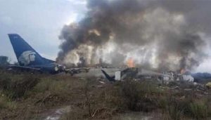 மெக்சிகோ நாட்டின் வடக்கு மாகாணமான டுராங்கோவில் உள்ள விமான நிலையத்தில் இருந்து 99 பயணிகள் மற்றும் 4 ஊழியர்கள் உள்பட 103 பேருடன் ஏரோமெக்சிகோ விமானம் செவ்வாய்க்கிழமை மெக்சிகோ சிட்டியை நோக்கி புறப்பட்டது. ஆனால், ஓடுதளத்தில் இருந்து விமானம் புறப்பட்ட சில நொடிகளிலேயே விபத்துக்குள்ளானது.