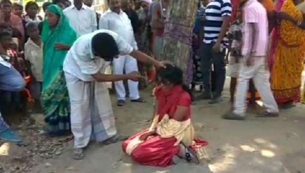 பீகார் மாநிலம் நவாடா பகுதியில் உள்ள ஜோகியா மாரன் கிராமத்தை சேர்ந்த சிறுமி வேறு சாதி வாலிபரை காதலித்தாள். அதை அறிந்த பெற்றோர் அவளை கண்டித்தனர்.இந்த நிலையில் அவள் வீட்டை விட்டு வெளியேறி தனது காதலனுடன் ஓட்டம் பிடித்தாள். இதனால் ஆத்திரம் அடைந்த அவளது தந்தையும் ஜோகியா மாரன் கிராம மக்களும் சேர்ந்து அந்த சிறுமியை தேடிப்பிடித்து இழுத்து வந்தனர்.
