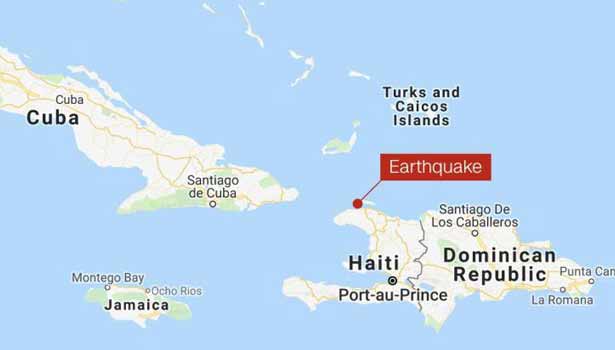 கரீபியன் கடற்பகுதியில் உள்ள ஹைதி நாட்டில் வடமேற்கே இன்று கடுமையான நிலநடுக்கம் ஏற்பட்டது. இது ரிக்டரில் 5.9 ஆக பதிவாகி உள்ளது. இது வடக்கு கடலோரத்தின் வடமேற்கே 12 மைல்கள் தொலைவில் 7.3 மைல்கள் ஆழத்தில் மையம் கொண்டுள்ளது.