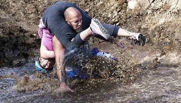 அமெரிக்காவின் கலிபோர்னியாவில் மைனே என்ற இடத்தில் மனைவியை கணவர் தூக்கி சுமக்கும் போட்டி நடத்தப்பட்டது. 834 அடி தூரம் மனைவியை தூக்கி சுமந்து முதலில் வரும் கணவர் வெற்றிபெற்றவராக அறிவிக்கப்படுவார் என அறிவிக்கப்பட்டிருந்தது.