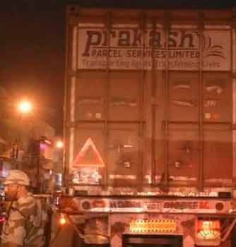அதை உடனே சரிசெய்ய முடியாததால் கன்டெய்னர் லாரி சாலையின் நடுவில் சுமார் ஒரு மணி நேரத்துக்கும் மேலாக பணத்துடன் நின்று கொண்டிருந்தது.