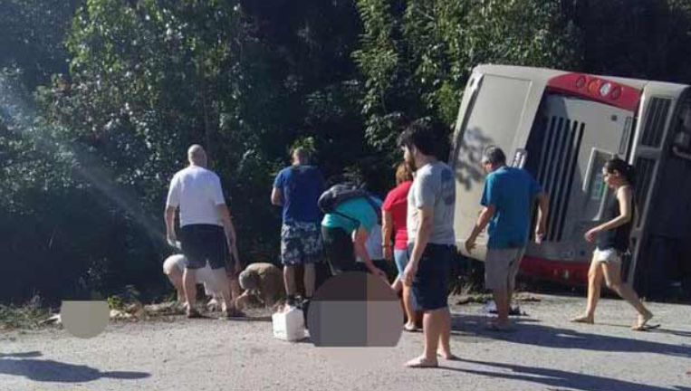 மெக்சிகோ நாட்டின் மத்திய பகுதியில் உள்ள குவானாஜுவாட்டோ மாநிலத்தில் சுமார் 30 பயணிகளுடன் ஒரு சுற்றுலா பஸ் சென்று கொண்டிருந்தது. லேகான் நகரத்தின் அருகே டிரைவரின் கட்டுப்பாட்டை இழந்த பஸ், சாலையோரத்தில் இருந்த பெரிய பள்ளத்தில் விழுந்து கவிழ்ந்தது. இந்த விபத்தில் 8 பேர் சம்பவ இடத்திலேயே உயிரிழந்தனர்.