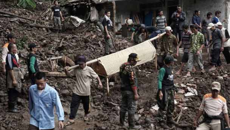 இந்தோனேசியாவில் மேற்கு ஜாவா மாகாணத்தில் கனமழை பெய்து வருவதால் வெள்ளப்பெருக்கு மற்றும் நிலச்சரிவு ஏற்பட்டு வருகிறது. நேற்று முன்தினம் மாலை பல்வேறு பகுதிகளில் நிலச்சரிவு ஏற்பட்டது. இதில் ஏராளமான வீடுகள் இடிபாடுகளில் சிக்கி புதையுண்டன. அந்த பகுதிகளில் மீட்புக்குழுவினர் முகாமிட்டு மீட்பு மற்றும் நிவாரணப் பணிகளை மேற்கொண்டுள்ளனர்.