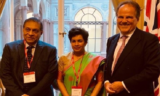 ஐ.நா மனித உரிமைகள் பேரவையில் நிறைவேற்றப்பட்ட 30/1 மற்றும் 34/1 தீர்மானங்கள் தொடர்பான வாக்குறுதிகளை சிறிலங்கா நிறைவேற்றுவதற்கான அவரது ஆதரவுக்கு ஊக்கமளித்தேன்” என்று கூறப்பட்டுள்ளது. பிரித்தானியாவுக்கான சிறிலங்கா தூதுவர் மனிசா குணசேகரவும் இந்த சந்திப்பில் பங்கேற்றிருந்தார்.