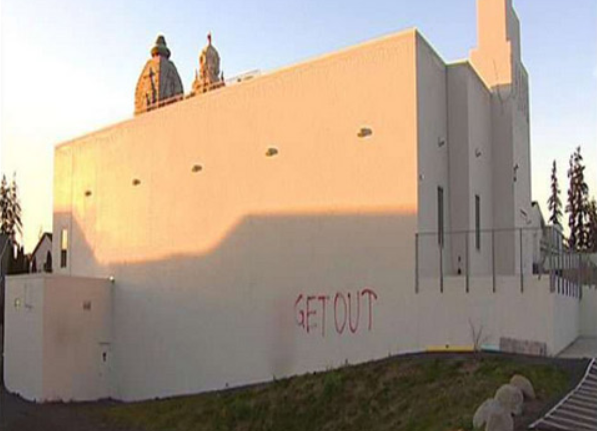 கோவிலின் உட்புற சிலைகள் மற்றும் சுவர்களின் மீது கருப்பு நிற சாயம் அடித்து, சில வாசகங்களும் எழுதப்பட்டிருந்தன. மேலும் அங்கிருந்த நாற்காலி ஒன்றின் மீது கத்தி குத்தப்பட்டிருந்தது. பின்னர் ஜன்னல், கதவுகள் உடைக்கப்பட்டு, அலமாரி காலியாக இருந்தது. இச்சம்பவம் இந்திய-அமெரிக்க மக்களிடையே அதிர்வலைகளை ஏற்படுத்தியுள்ளது. இது மத வெறுப்புணர்வை வெளிப்படுத்தும் விதமாக இருந்ததாக பலரும் குற்றம்சாட்டி உள்ளனர். இதுதொடர்பாக அதிகாரிகள் விசாரணை நடத்தி வருகின்றனர்.
