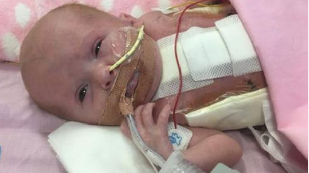 இங்கிலாந்தில் உள்ள நாட்டிங்காம் பகுதியைச் சேர்ந்த டீன் வில்கின்ஸ்-நவோமி ஃபிண்ட்லே தம்பதியருக்கு கடந்த 2017ம் ஆண்டு நவம்பர் மாதம் 22ம் தேதி பெண் குழந்தை ஒன்று பிறந்தது. லெய்செஸ்டரில் உள்ள கிளென்ஃபீல்ட் மருத்துவமனையில் பிறந்த இந்த குழந்தைக்கு வனெலோப் ஹோப் வில்கின்ஸ் என பெயரிட்டனர். இக்குழந்தை பிறக்கும்போதே நெஞ்செலும்பு இல்லாமலும், இதயம் உடலுக்கு வெளியே இருந்து துடித்தபடியும் காணப்பட்டது.